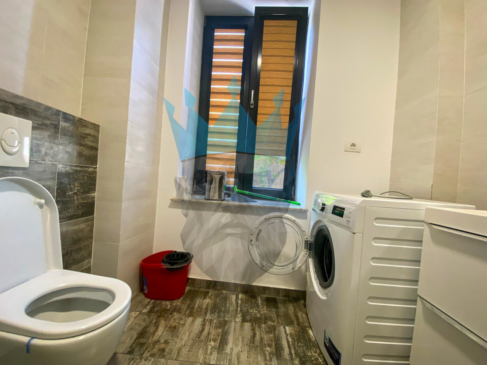 Bucataria este mobilata si utilata complet, dotata cu toate electrocasnicele necesare.
