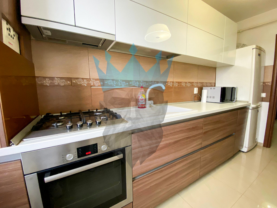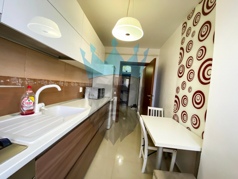 Bucataria este separata, mobilata si utilata complet, dotata cu toate electrocasnicele necesare, inclusiv masina de spalat vase!