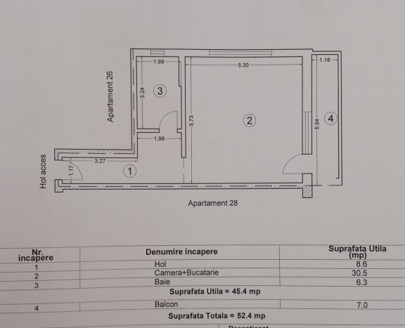 Aprtamentul este structurat : bucataria open space cu livingul , 1 Dormitor , 1 Bai si un balcon cu o intrare din linving .