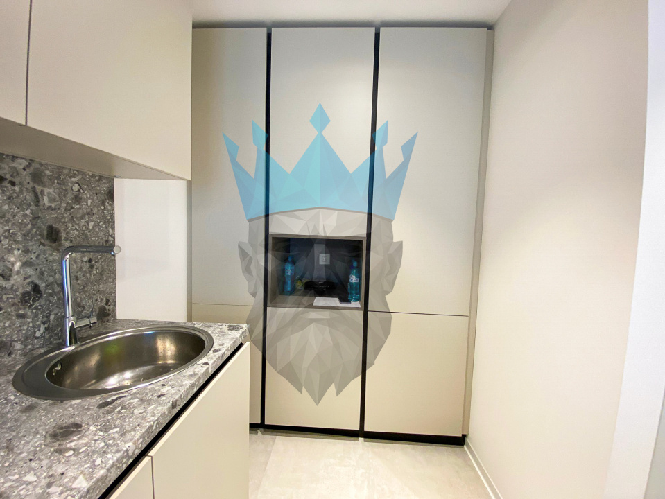 Bucataria este openspace dar separata de zona de living, complet mobilata si utilata cu toate electrocasnicele necesare!