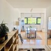 Orientare apartament către piscina și Gradina interioară, către sud.