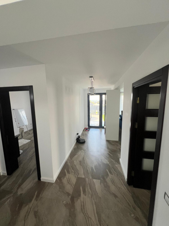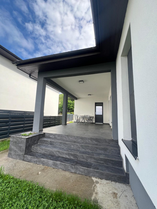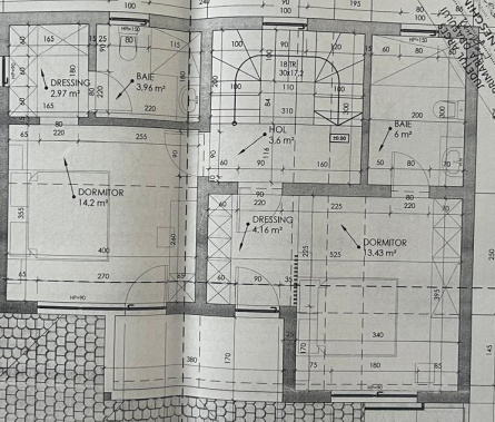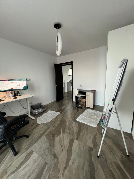 Suprafata construita: 195 mp , regim de intaltime P+1E, suprafata utila 123 mp. - 4 camere, 1 bucatarie, 3 bai/grupuri sanitare. Parterul este compus din 2 camere , living + dormitor, 1 bucatarie, 1 baie,1 hol. Etajul este compus din 2 dormitoare mari, 2 bai si un dressing.Camerele beneficiaza de un balcon comun cu o suprafata generoasa. Accesul la etaj se realizeaza prin scara interioara de la parter.