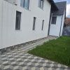 Curte amenajată cu pavaj, gazon și două porți de acces