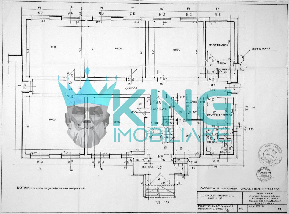 KING IMOBILIARE va propune spre INCHIRIERE un Spatiu Birouri cu 4 camere , nemobilat si utilat/a in zona “ Grozavesti ”