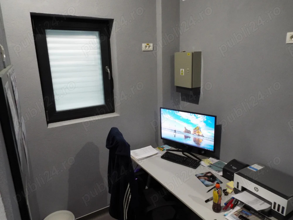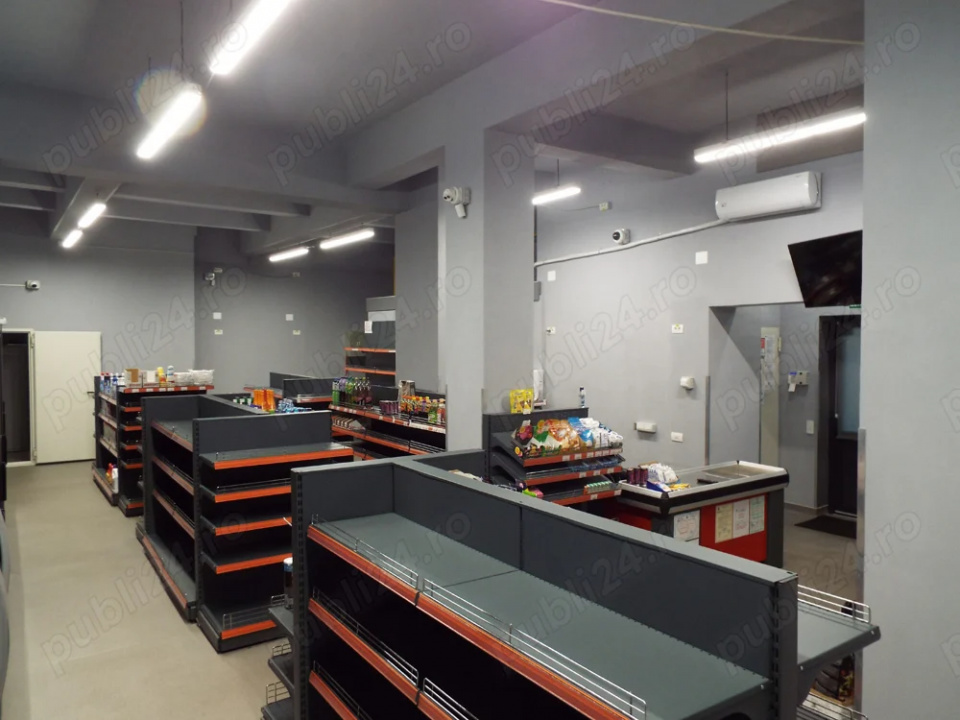 Dispune de o deschidere stradală de 14,5 metri liniari și 3 uși de acces. La parter se află două grupuri sanitare, dintre care unul cu duș, un birou, un depozit și o sală mare în care a funcționat un magazin alimentar. La subsol există un singur spațiu de 5x5 metri.